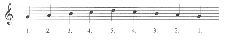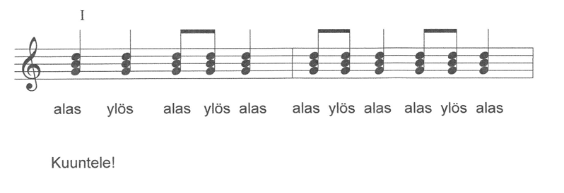 1. harjoitus: käytä vain kesisormia ja peukaloa (Ääni kuuluu nuottiviivastoa klikkaamalla)